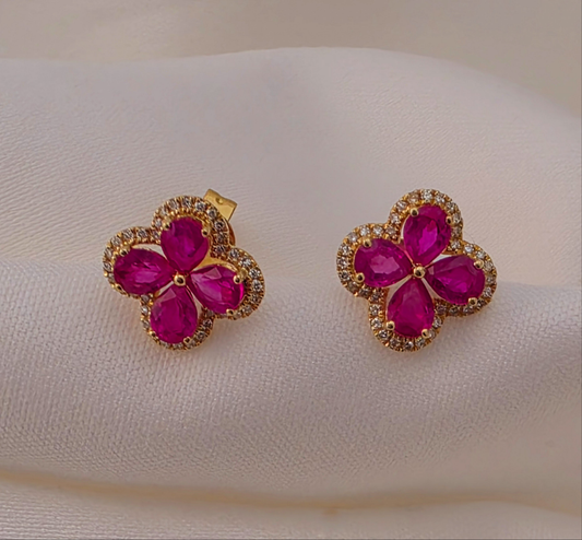 "Blossoming Ruby Elegance Earrings, 18k gold