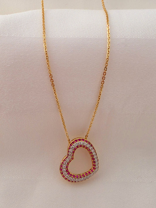 "Crimson Heart Embrace Necklace 18k gold diamond and Ruby