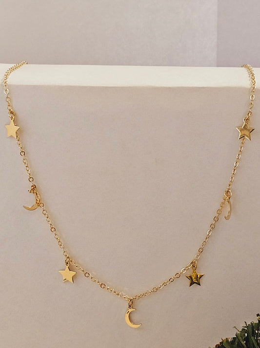 Chain choker with star & moon