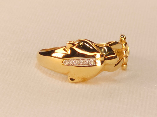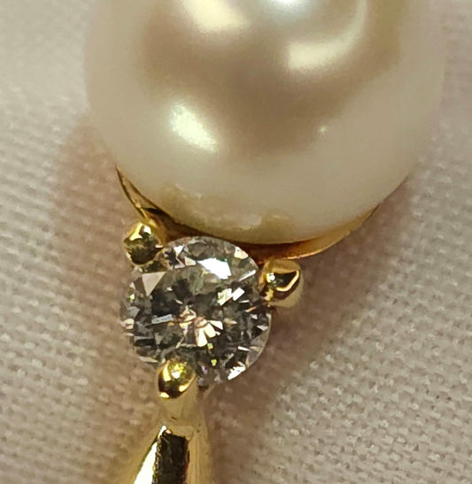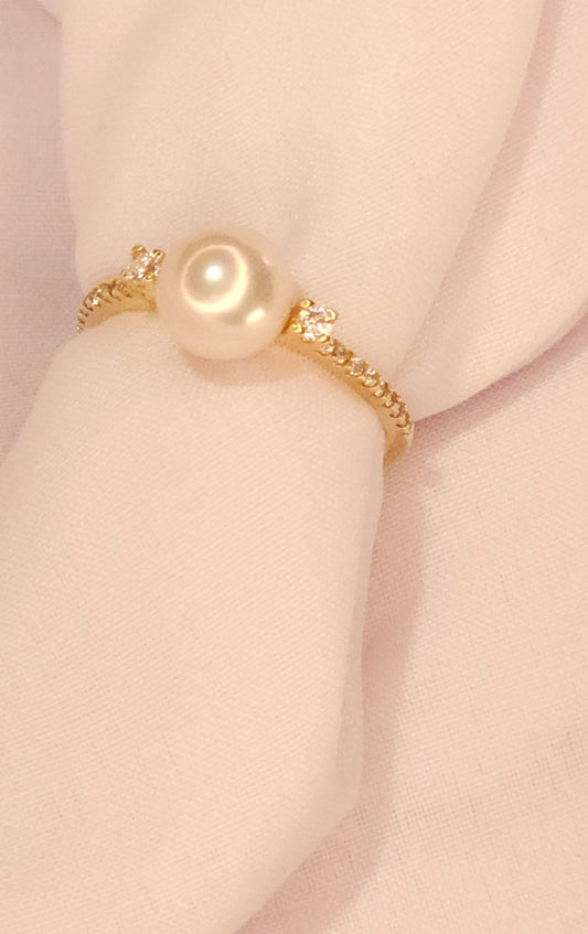 Gold Ring with Natural Pearl and 2 Diamonds.